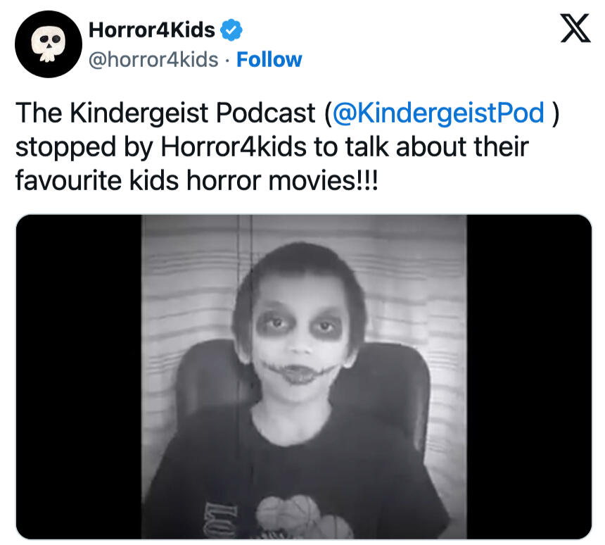 Created with my neice when she was 12-years-old, Kindergeist aims is to create a space for older children to explore horror through fun, inspiring and meaningful dialogue.Guests include: Josh Ruben (Heart Eyes), Amie Donald (M3GAN), Emily Hagins (Sorry About the Demon), Jed Shepherd (Host) and more.